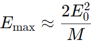 For a head-on collision, the energy transfer is maximized. The maximum energy transfer Emax in such a collision can be approximated using the equation: