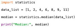 ================================================================================= median() in csv: code: ============================================ Calculate the median of a list of numbers code: Output: ============================================